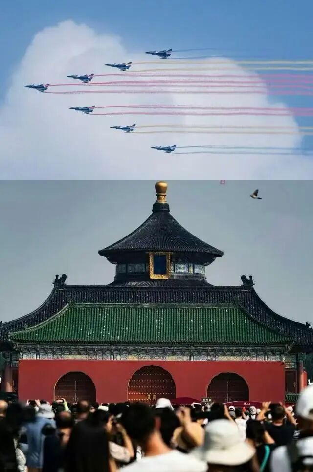 阅兵画面中,军靴踏地之声通过扬声器传出,虽只经电子设备直播转切,但那些年轻的面孔在镜头特写下一闪而过,每张脸都绷得紧实,目光平视前方,仿佛要望穿时空。他们动作整齐划一,手臂扬起的高度、脚步落下的节奏,毫厘不差。隆重举行7架歼-10表演机拉出14道彩烟寓意着中华民族14年可歌可泣的抗战历程象征着14亿多中国人民奔向强国复兴的光明前景彩烟和天坛震撼同框。